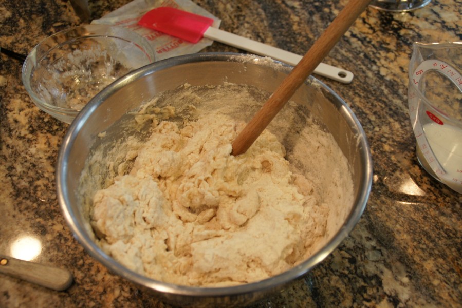Mix while rotating bowl