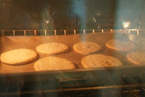 Cooling.  I think I let them go a minute too long; I usually like them just brown on the edges with almost no coloring elsewhere.  These will be a bit more nutty tasting, I think.