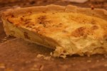 I unrolled the pie crust and slapped it into a pyrex pie plate, pressing all around the surface to make sure there were no air bubbles. I sprinkled the pancetta bits along the bottom and followed with a layer of gruyere. I slowly poured the liquid over the cheese and pancetta, and carefully placed it in my pre-heated oven. Bake for 45 minutes, then check through the oven door (don’t open) to see if the quiche has puffed up and browned a bit and if the crust has likewise browned. If so, open the door and jiggle the pie pan. If there’s too much movement, continue to bake and check every 5 minutes. When the quiche seems firmer (less movement), you can take a thin knife and insert it into the middle of the quiche; if it comes out clean, the quiche is set. Take the quiche out and let it rest 15 minutes before serving. Note: if the crust seems to be browning faster than the custard is setting, turn the oven down to 350 degrees.