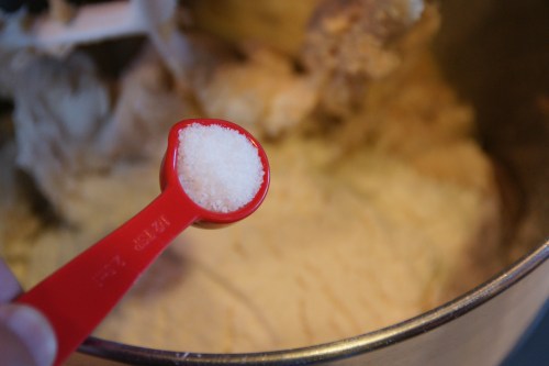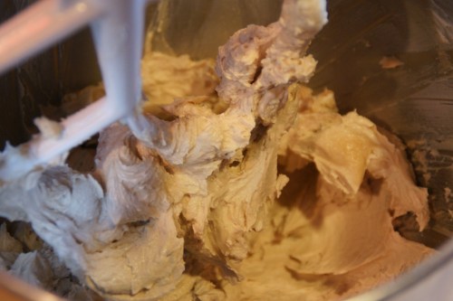 Mix on medium (otherwise the butter will fly all over the place). This is what “creamed” looks like: