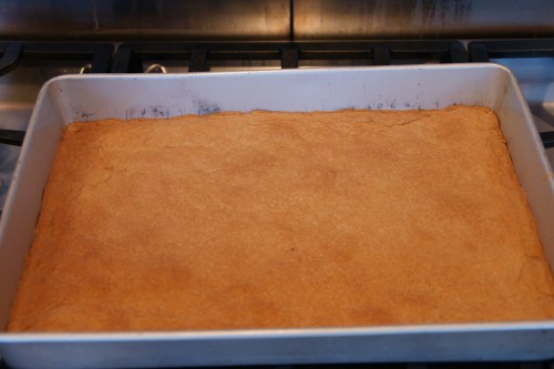 Cool til the pan is no longer hot (really, I don’t remember timing this, but you want the bars to have cooled down til they’re firm enough to slice). I sliced mine 6×4.