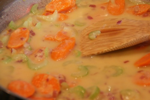 All vegetables softened– notice the translucent celery and onions