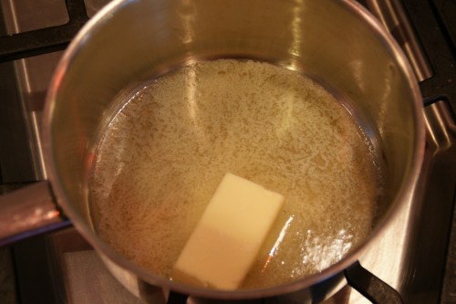 When most of the foam is gone and there is a coating of solids on the bottom, the butter will quickly begin to brown: