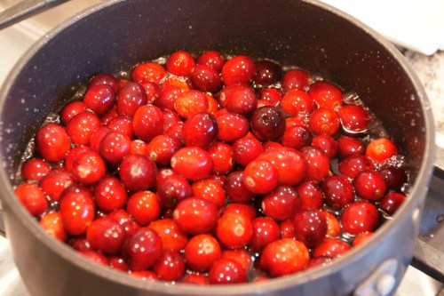 The cranberries will begin to burst; stir occasionally.