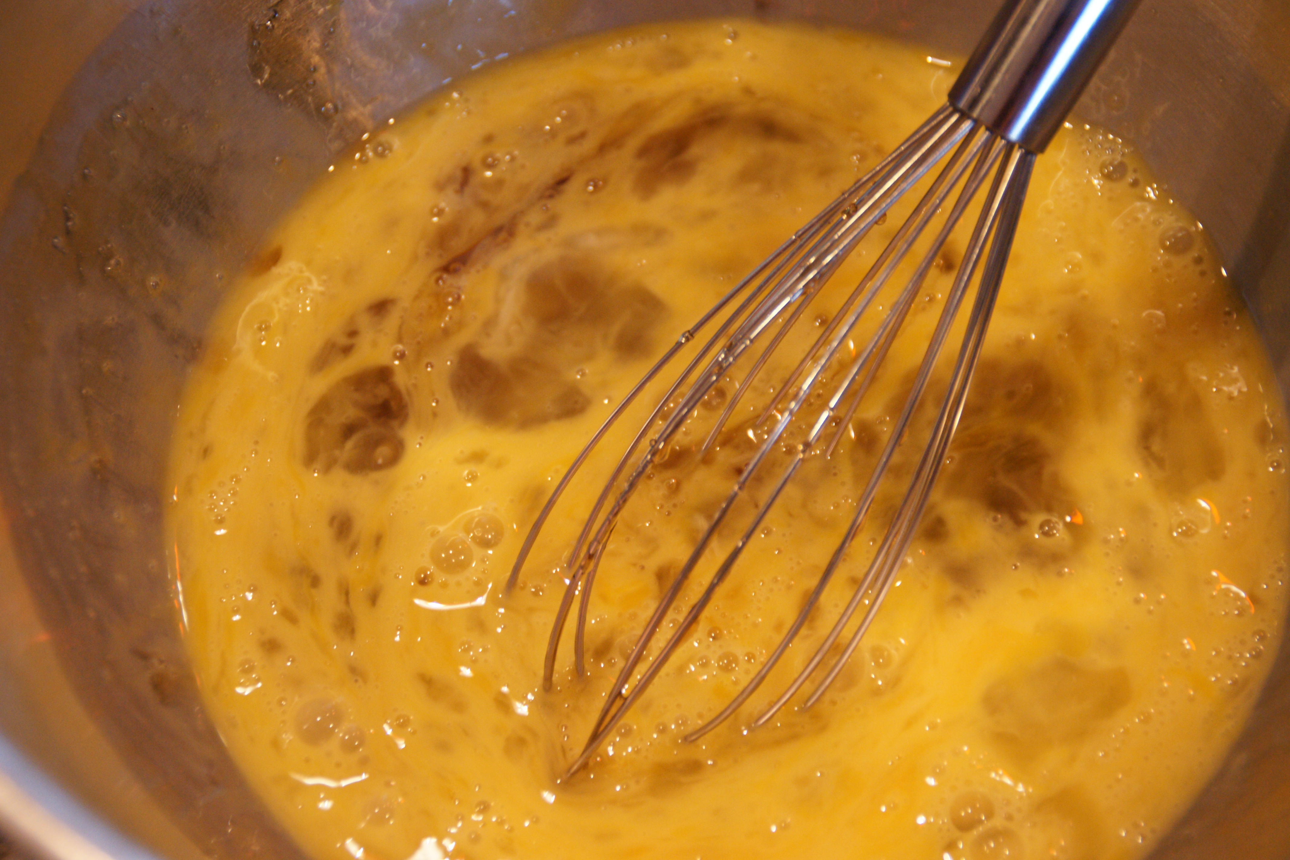 Whisk eggs first, then add syrups and whisk again.