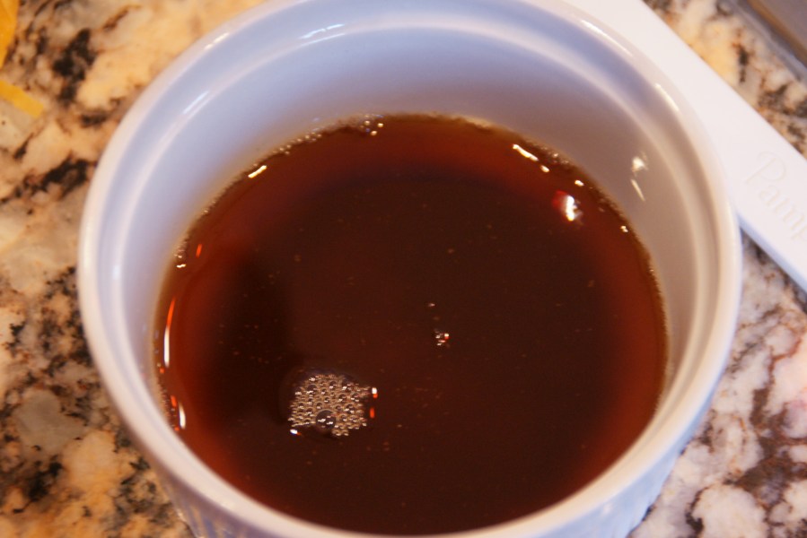 The dark solids do NOT go into the pie filling. I poured the butter into a small bowl with a lip so I could control what I poured out!