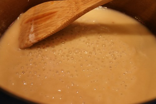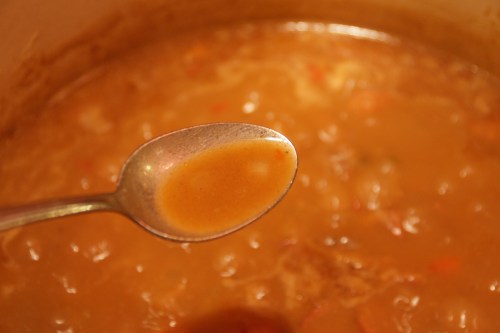 This is how far I go with my roux; I’ve done darker, but I stopped here because I was afraid if I paused to take a picture at the next level of brown I could potentially have a burned roux!
