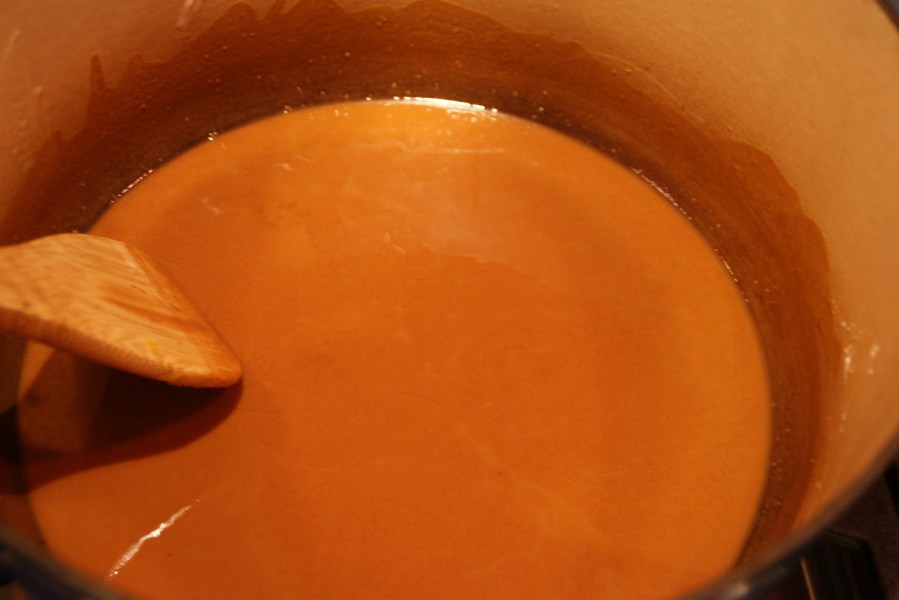 This is CARAMEL roux. You could go a little darker, but the flavor at this stage is still great!