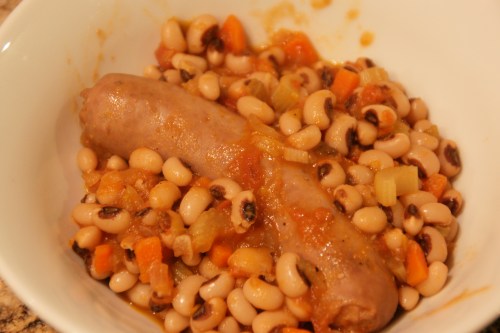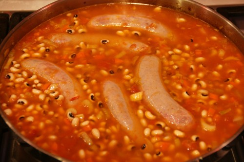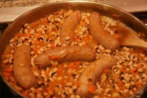 Italian Sausage and Black-eyed Peas Simmered in Tomatoes