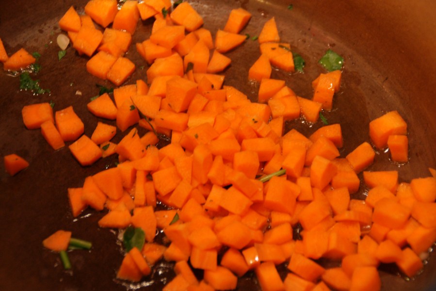 Soften slightly (mostly to ensure you don’t have uncooked carrots in the finished product)