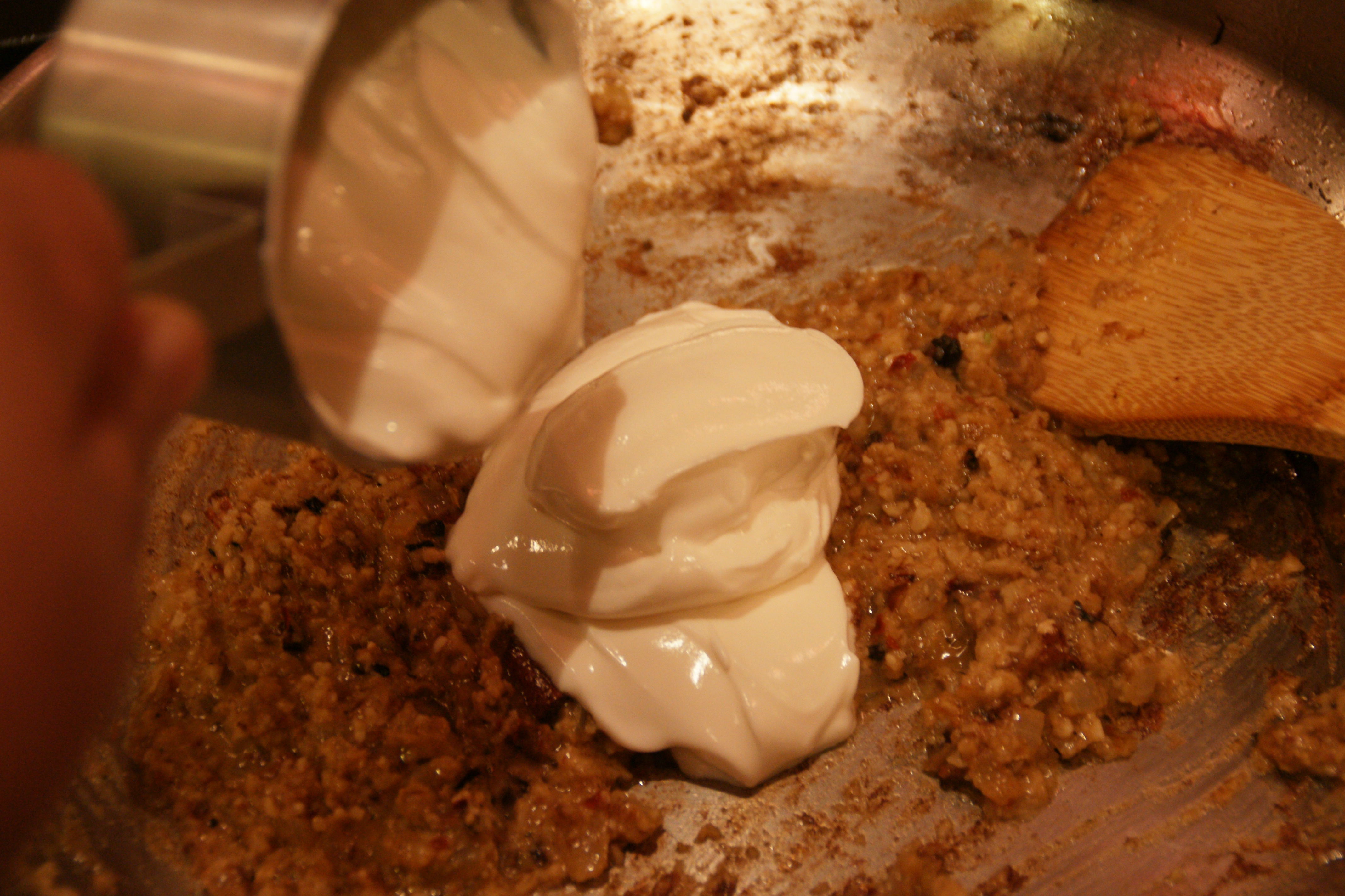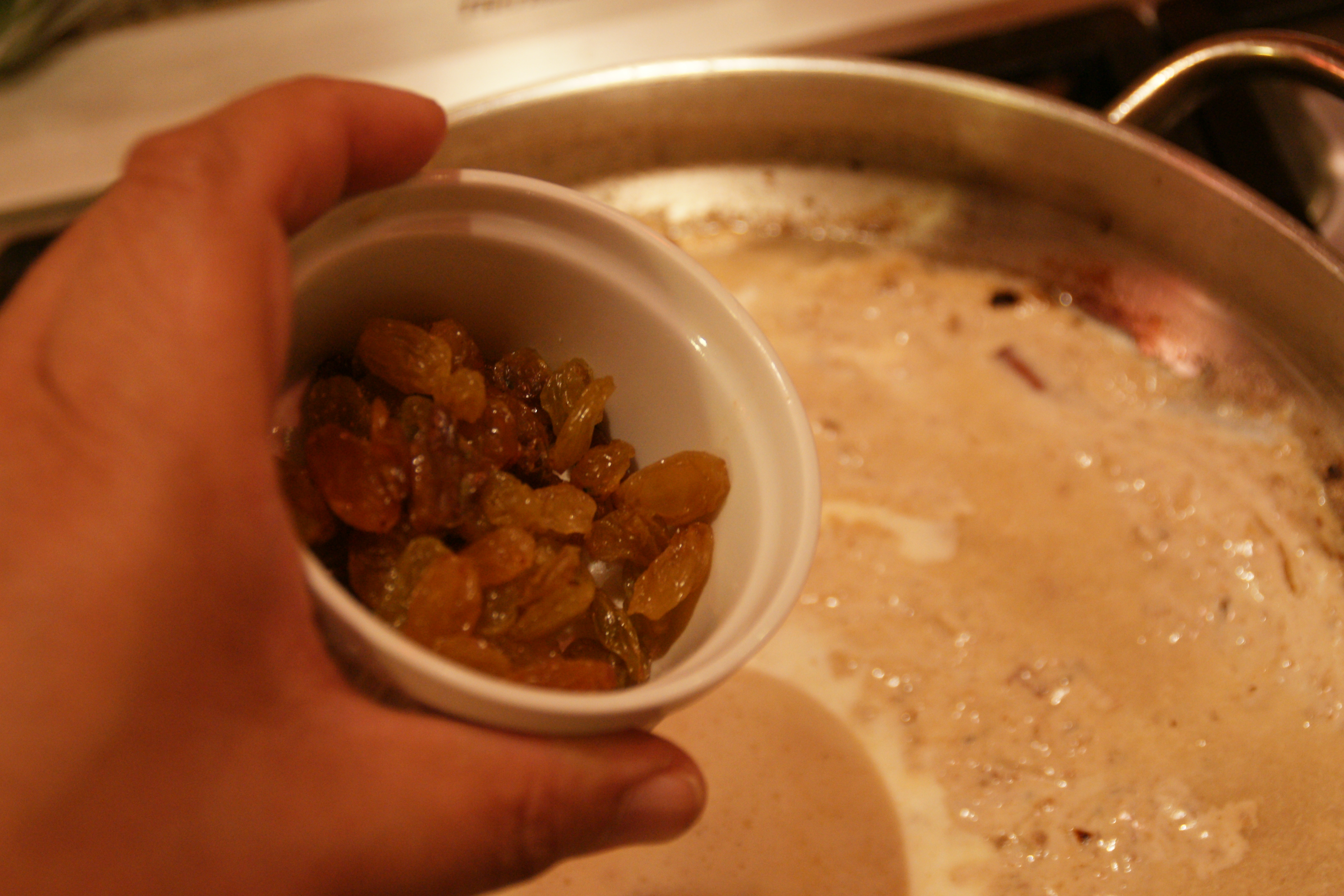 followed by the remaining wet stuff (stock and cream) and the golden raisins.