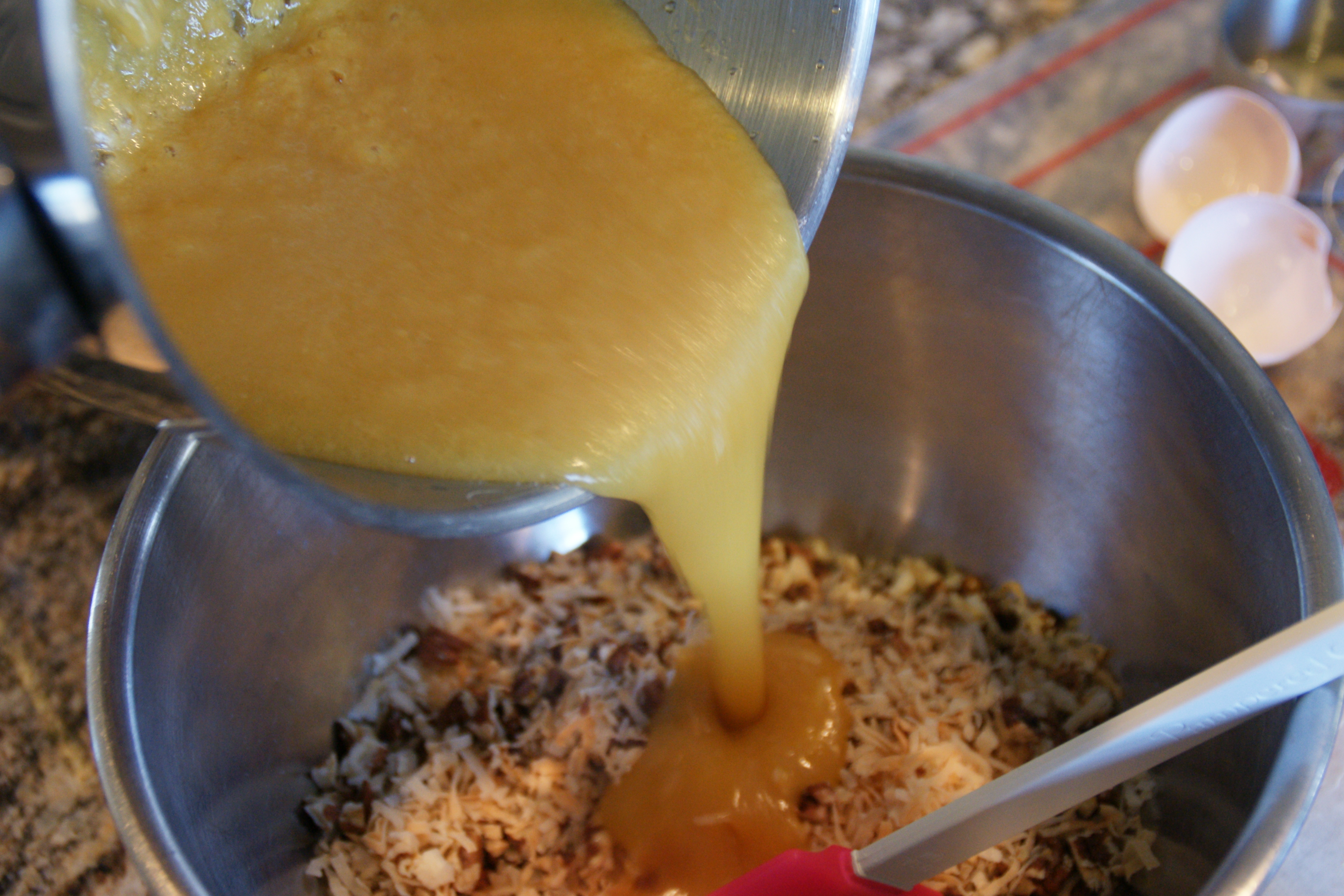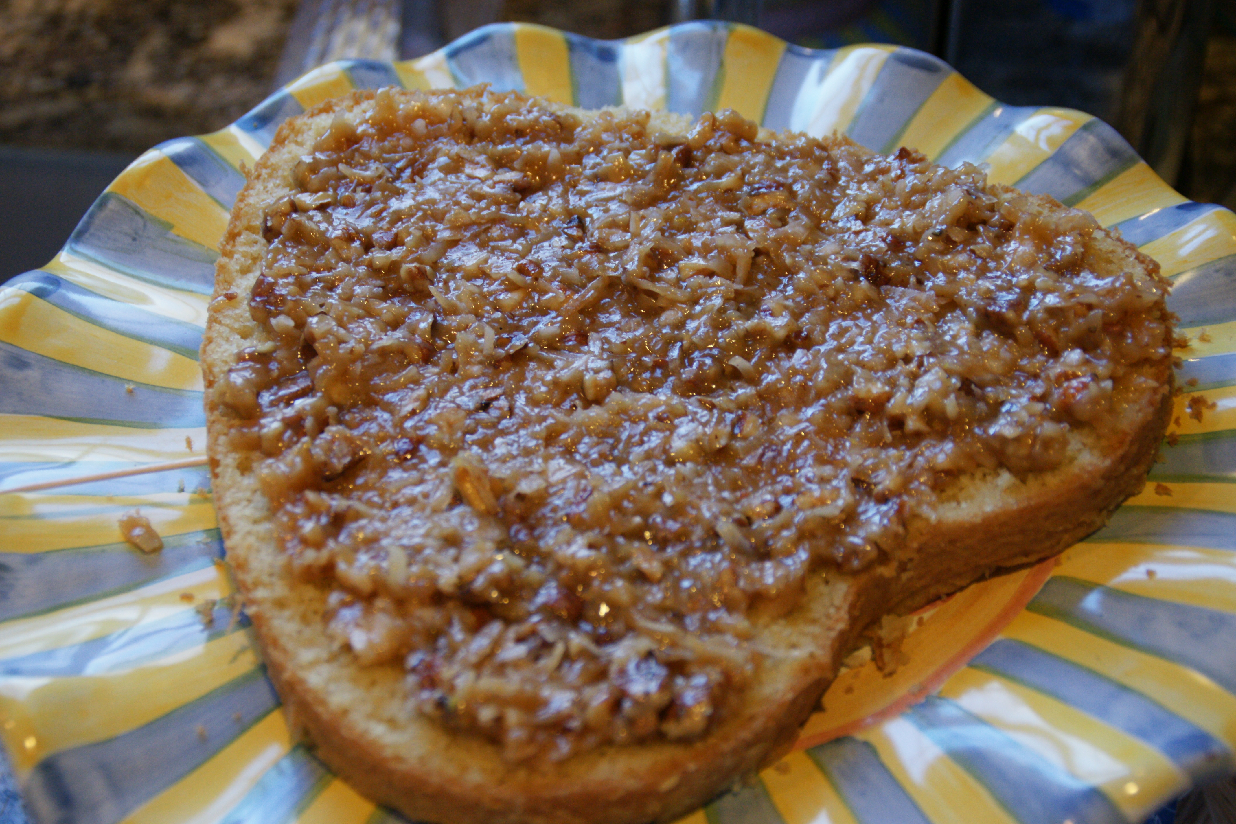Lo and behold!  I quickly realized (duh) that this was the same icing for German chocolate cake!  It’s a sweetaholic’s dream– thick and gooey, loaded with roasted nuts and coconut.