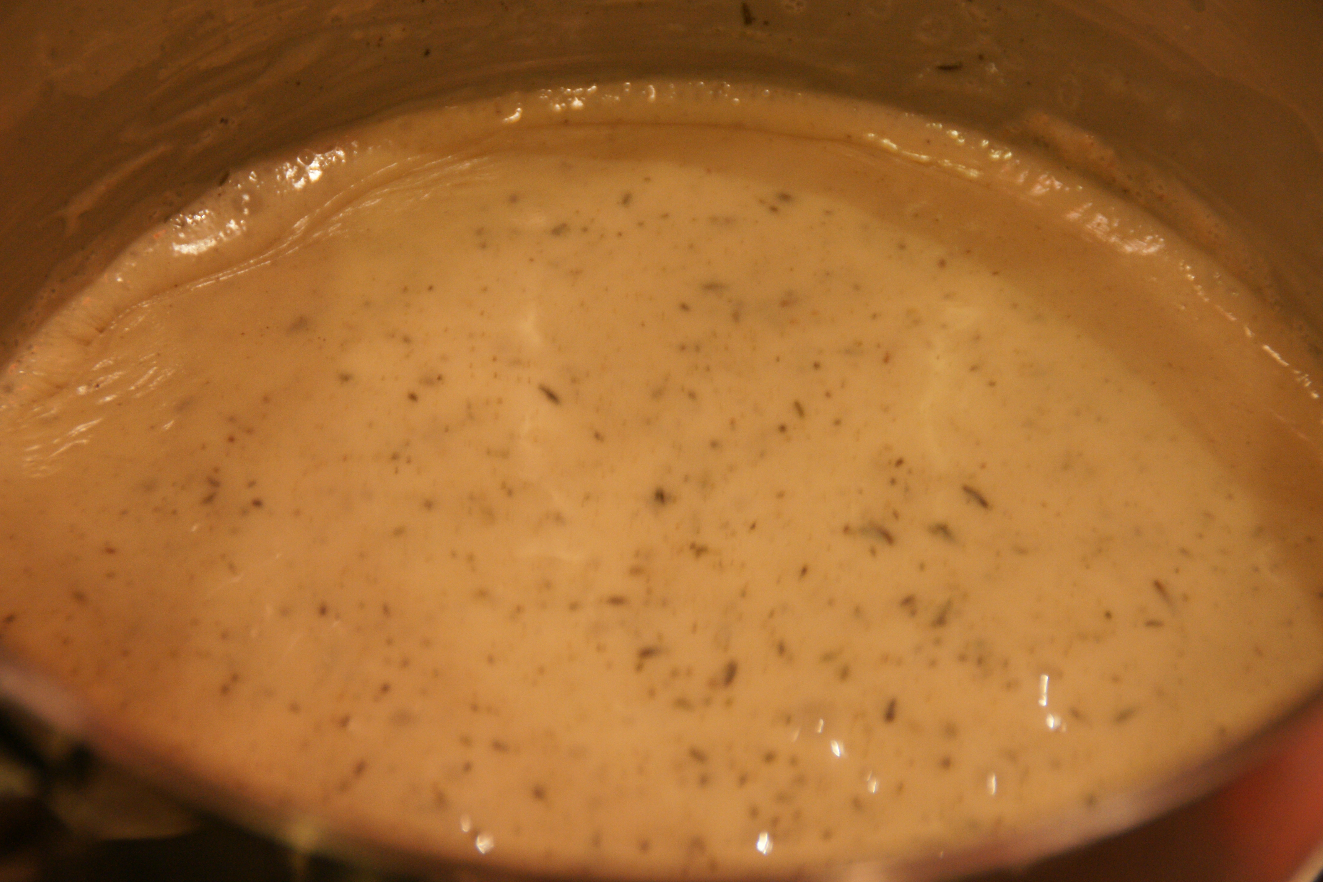 All in all, the recipe accomplished what I wanted to do– create a lower fat sauce that tasted like one made from a butter-based roux! Now I’ll just wait for my sister to comment with the name of that half and half that doesn’t have any corn syrup…