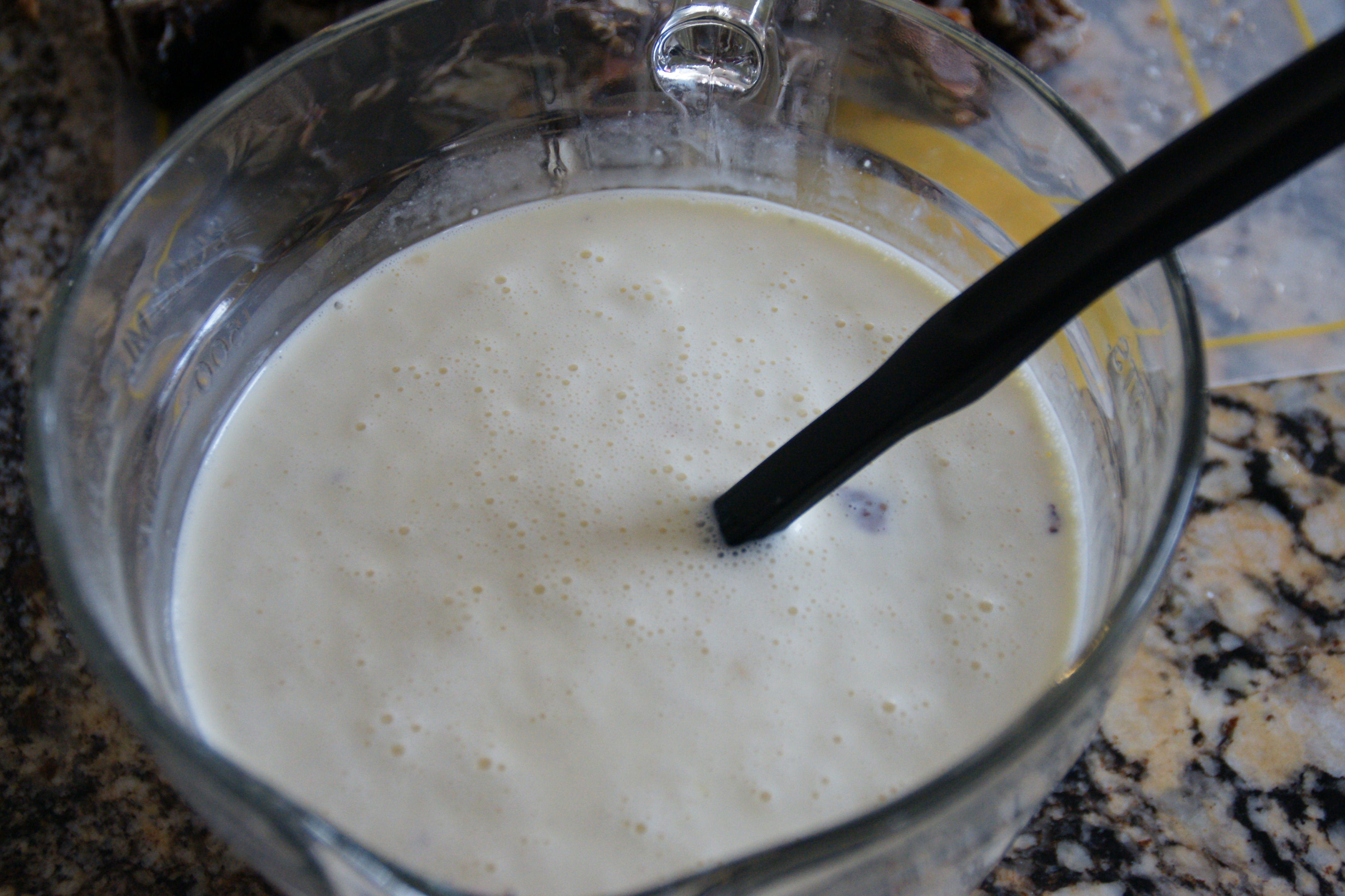 In a medium mixing bowl (I used a batter bowl measuring cup) beat 5 eggs, then add the half and half.