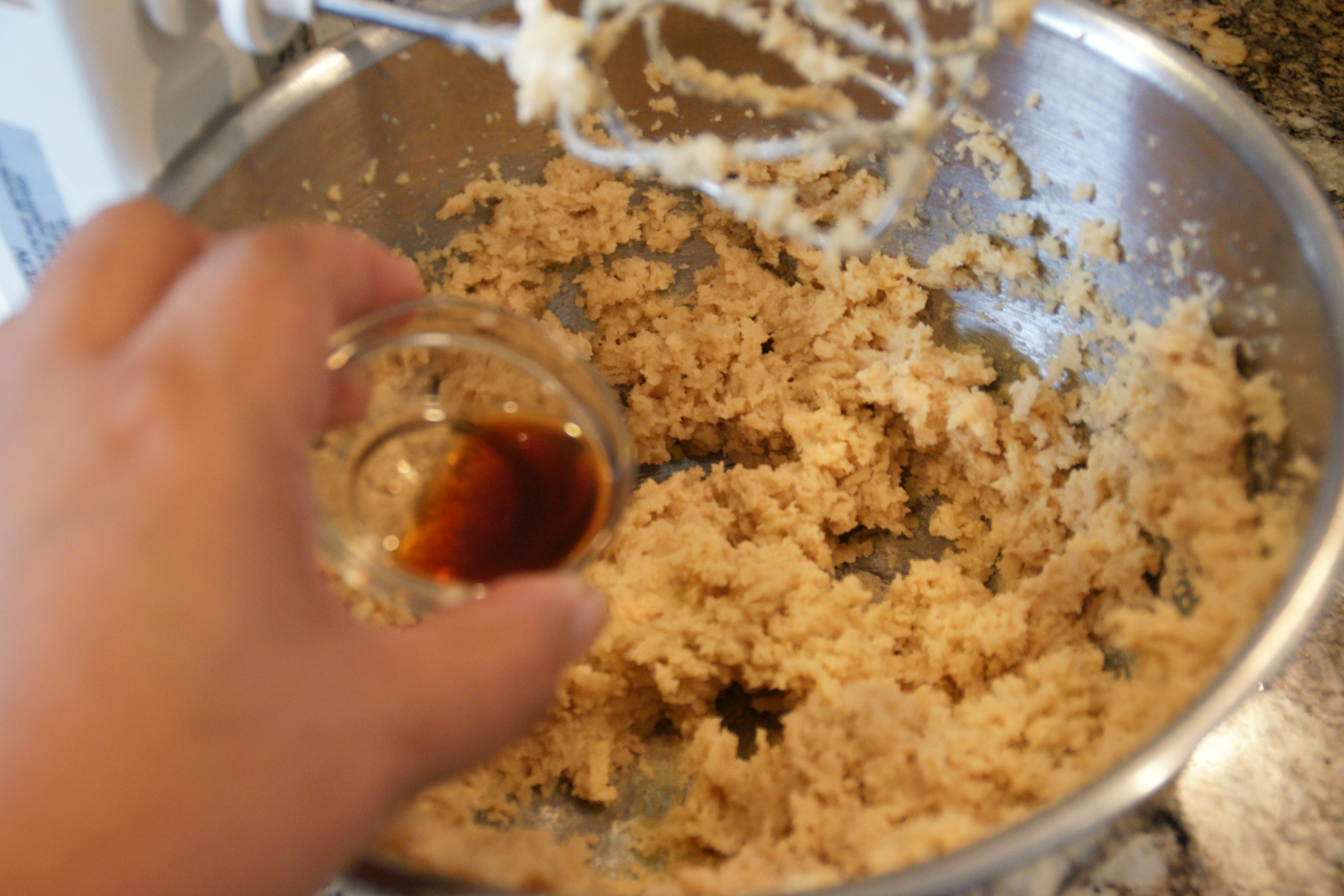 Cream the butter and sugar, scraping down the sides occasionally, then add the vanilla and beat briefly.