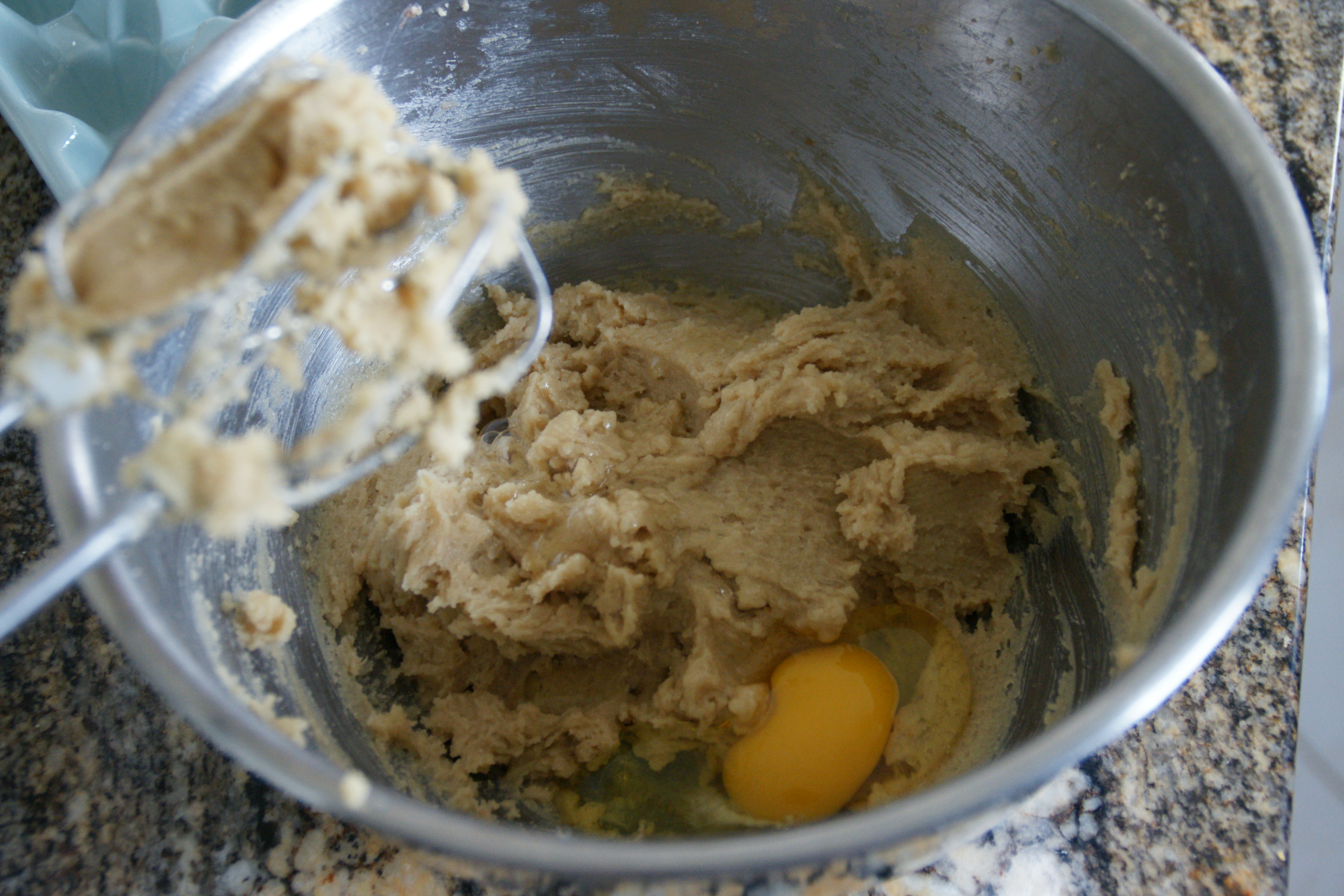 Mix the dry stuff in one bowl; in a second bowl, place the butter and sugars together. Before creaming, I break up the brown sugar with my fingers to make sure there are no big lumps.