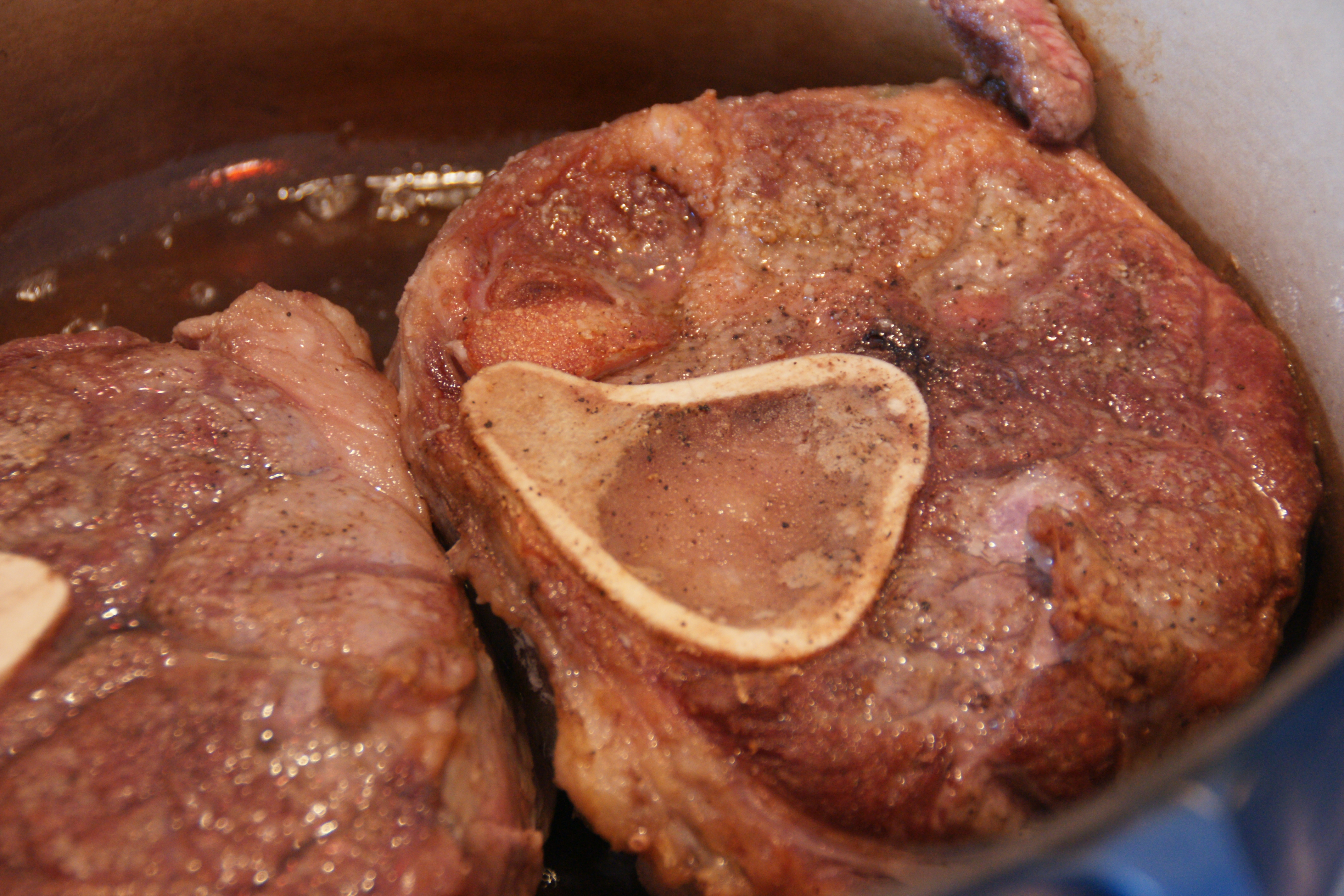 Braised Beef Shanks, Osso-Buco Style (adapted from M. Hazan)