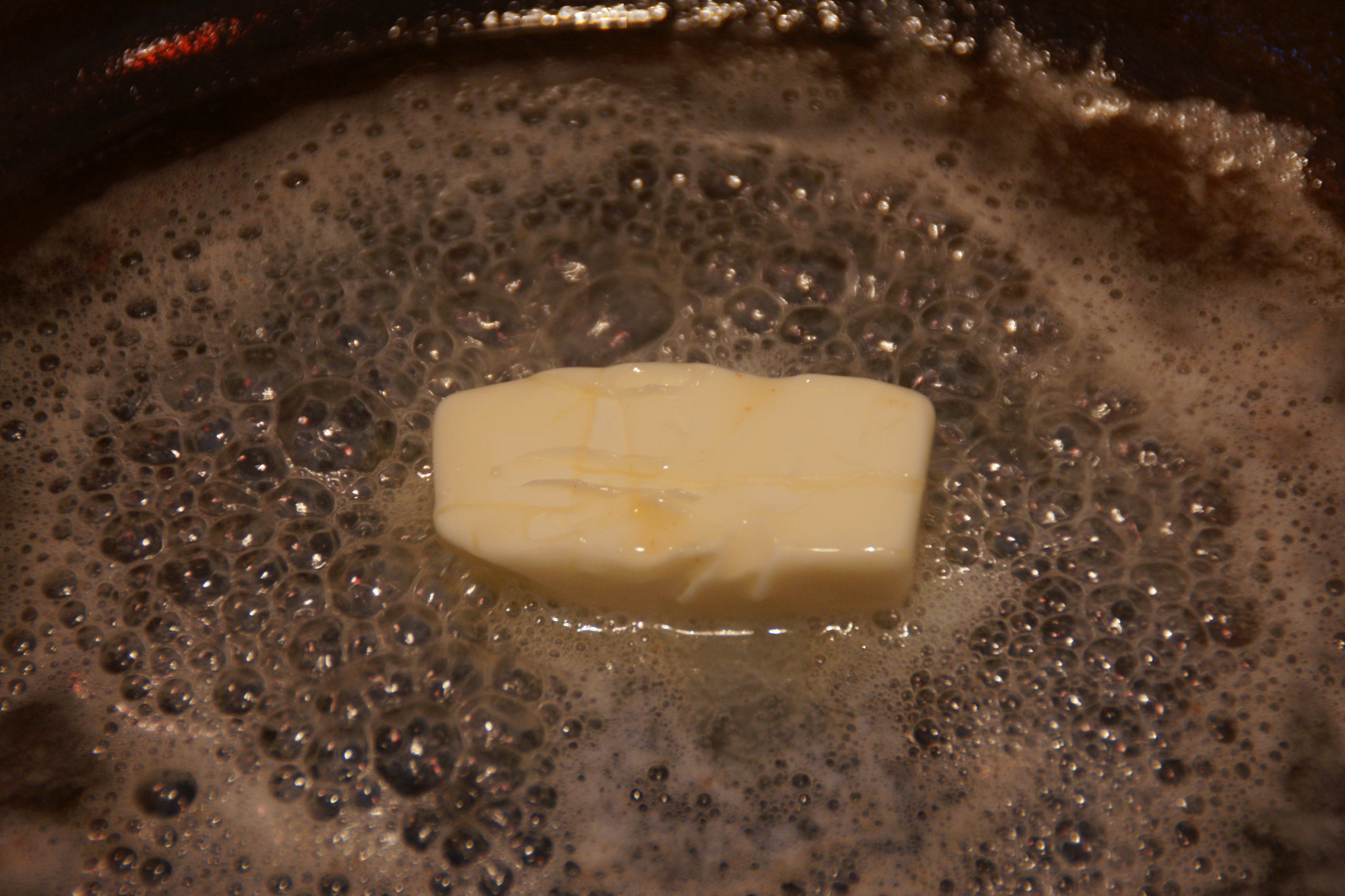Add the lemon peel and garlic. Stir and cook briefly. The scent of the lemon is released when it hits the hot butter– it’s lovely!