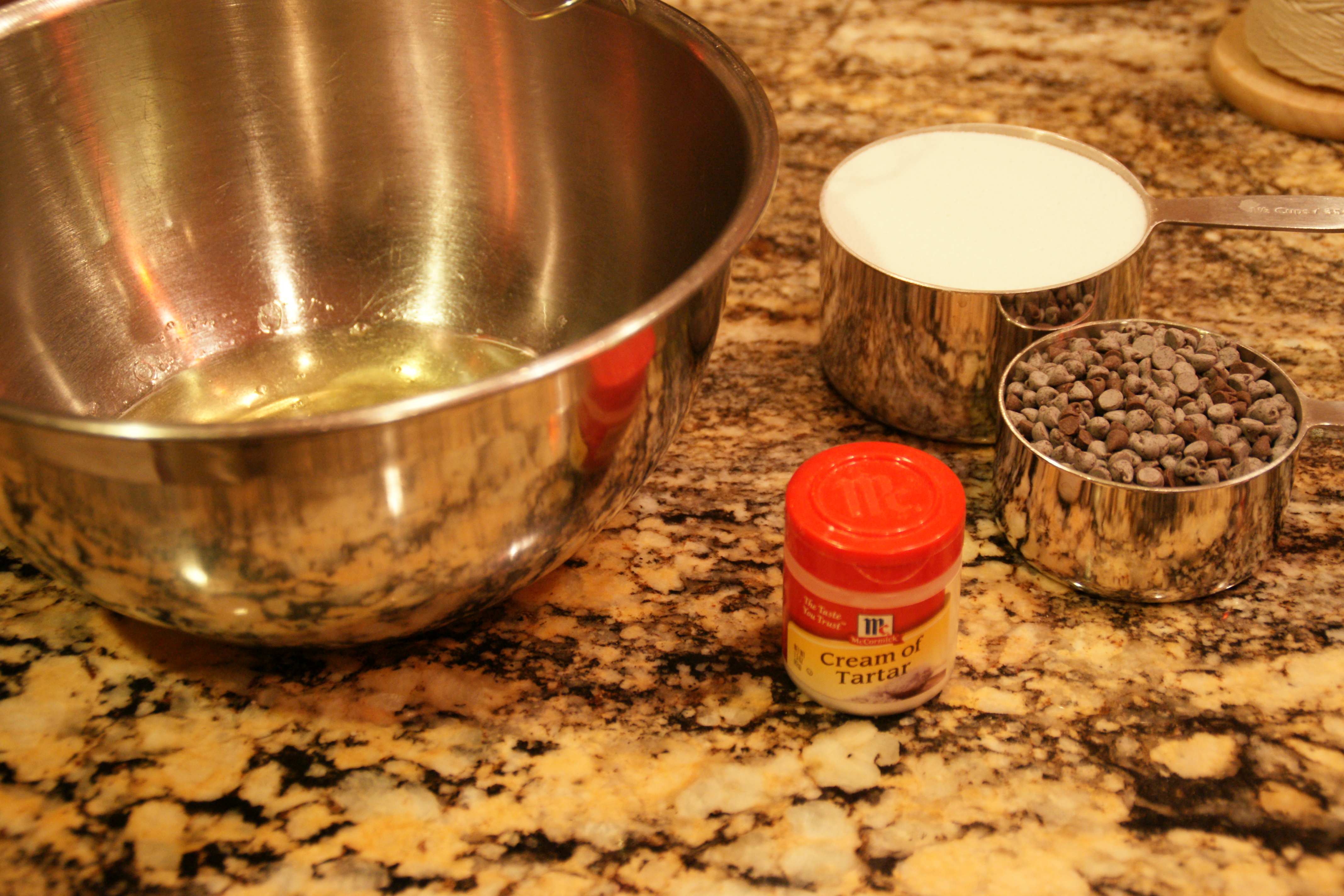 He slowly improved through the course of the day, and at dinner was able to eat; I made his favorite dish– chicken and dumplings. He wanted something for dessert, but I didn’t want to overload him with anything from our current inventory of baked goods. They were too high in fat and I was leery of upsetting his stomach. I told him I would make him some meringues with a handful of mini-chocolate chips stirred into the mix (yup, there’s that chocolate obsession again) that he could try later in the evening if he felt better.