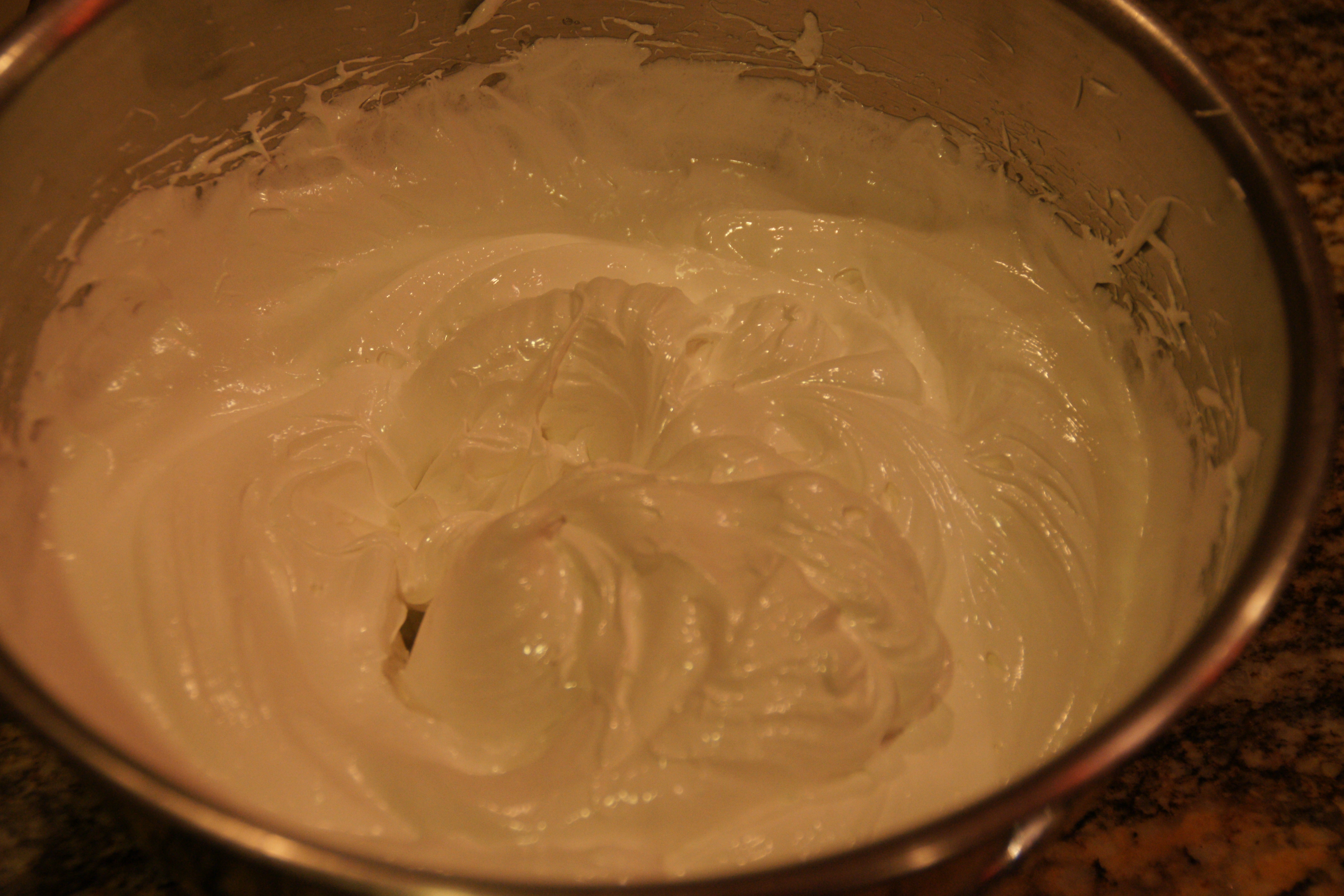 Meringues are easy to make, provided there’s little humidity. Don’t make these on a rainy day because they will never thoroughly dry out into the sweet pastries that initially crunch in you mouth then melt away! I’ve made them two ways: 1) bake at a very low temperature (175 to 200 degrees) for 2 to 3 hours or 2) bake at a moderate heat (300 degrees) for 20 to 30 minutes and let dry an additional hour in the oven (keeping the door closed). I prefer the first method. Much of the drying time depends on the weather and how big you drop the meringues, so expect to experiment with the first tray or two.
