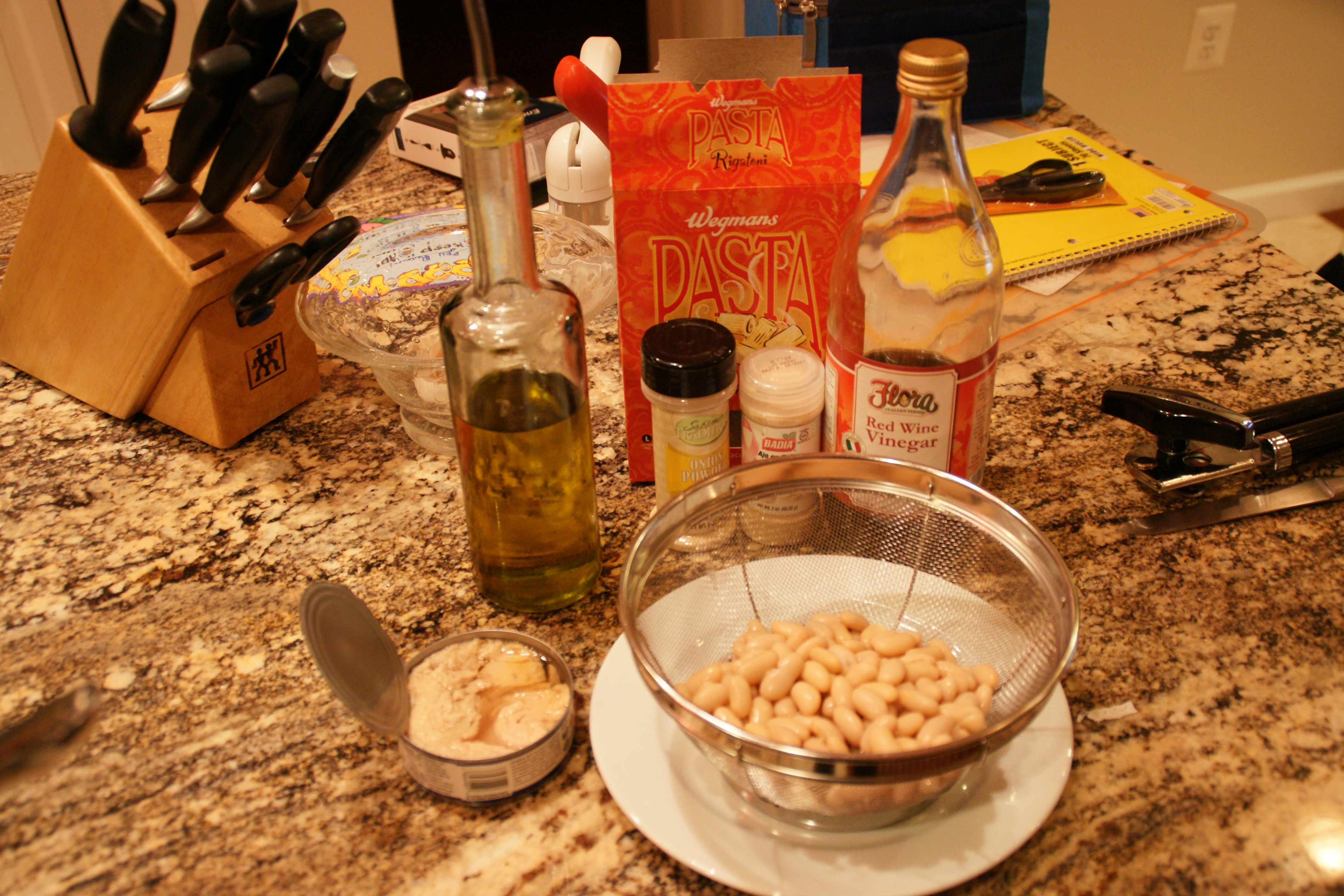 Then I told him that the protein in animal meats could be found by mixing beans another protein source like pasta or rice. He decided that we would make a spinoff of one of our family dinners– pasta with cannellini beans and canned tuna in oil. I warned him that we might have problems with canned tuna in oil, and may not be able to get the Italian tuna that I usually use at $3.5o a can.