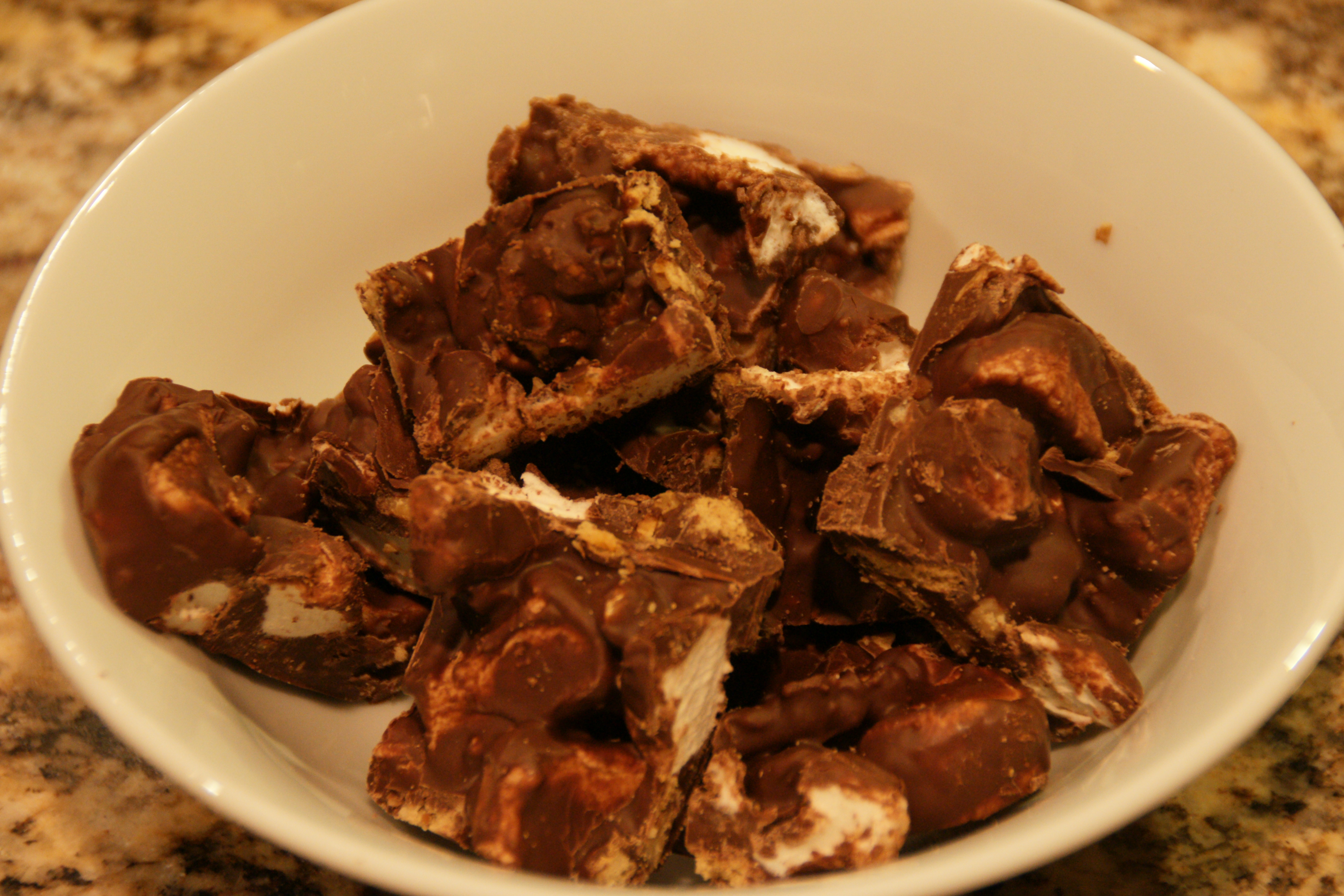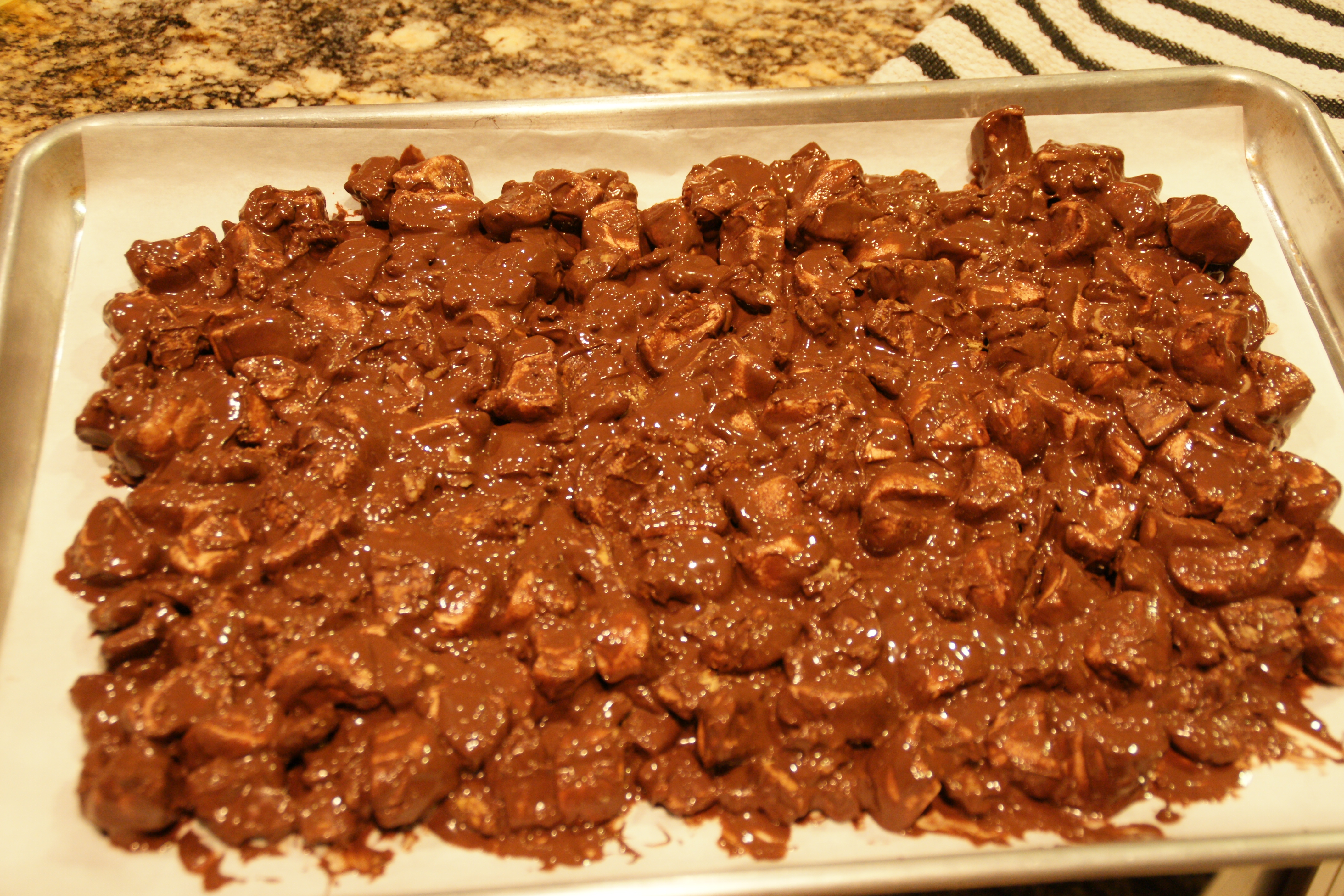 The only change I made to the recipe was to toast the chopped walnuts; I wanted to use almonds like real Rocky Road (I’m thinking Baskin-Robbins here), but I realized I had used the last of them with my spicy nut recipe.