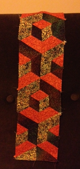The second class was easier for me; it was block construction and since I can sew a straight line, the result was much better. I may actually finish it!