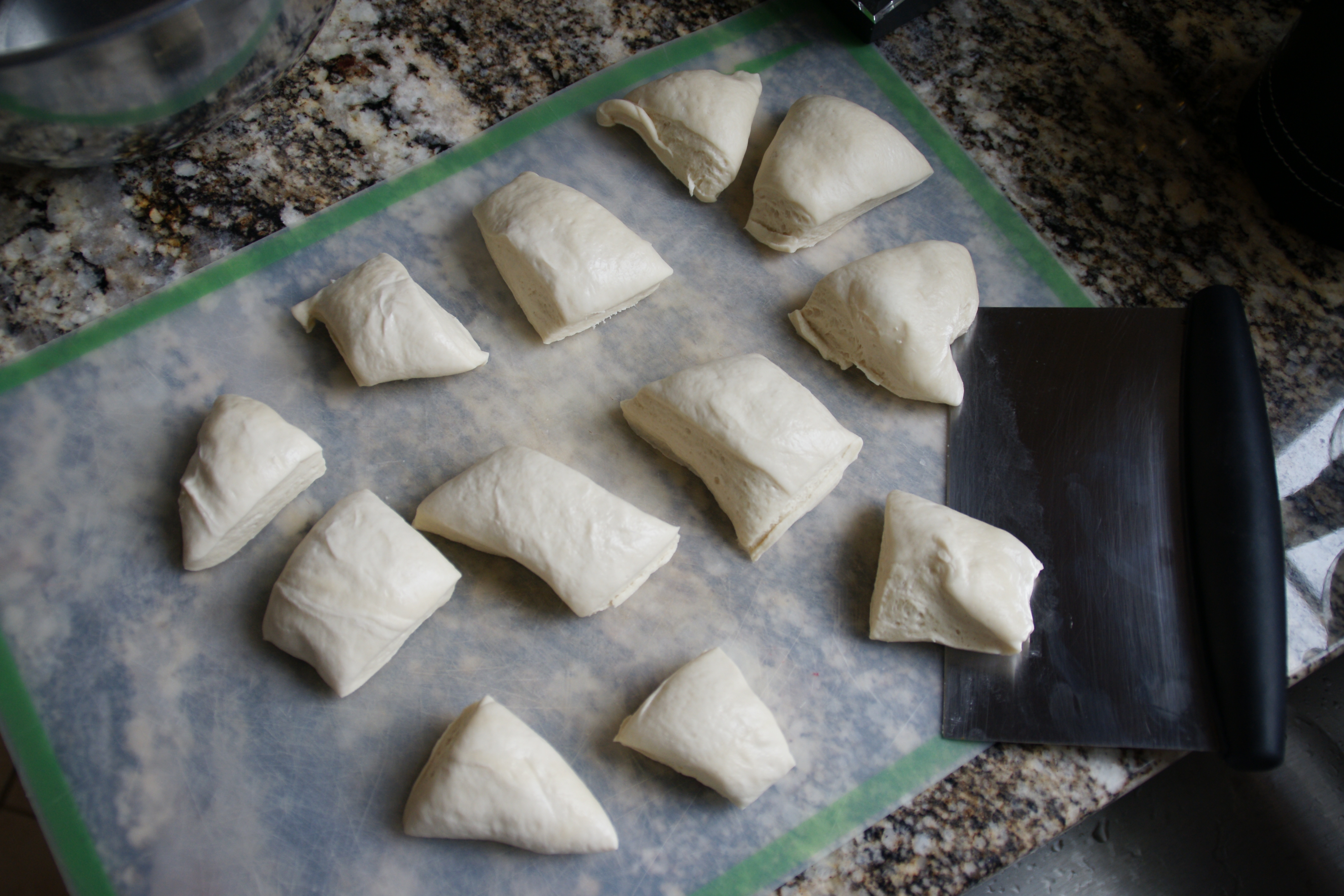 Cut it into 12 pieces with your dough scraper, icing spatula, etc.