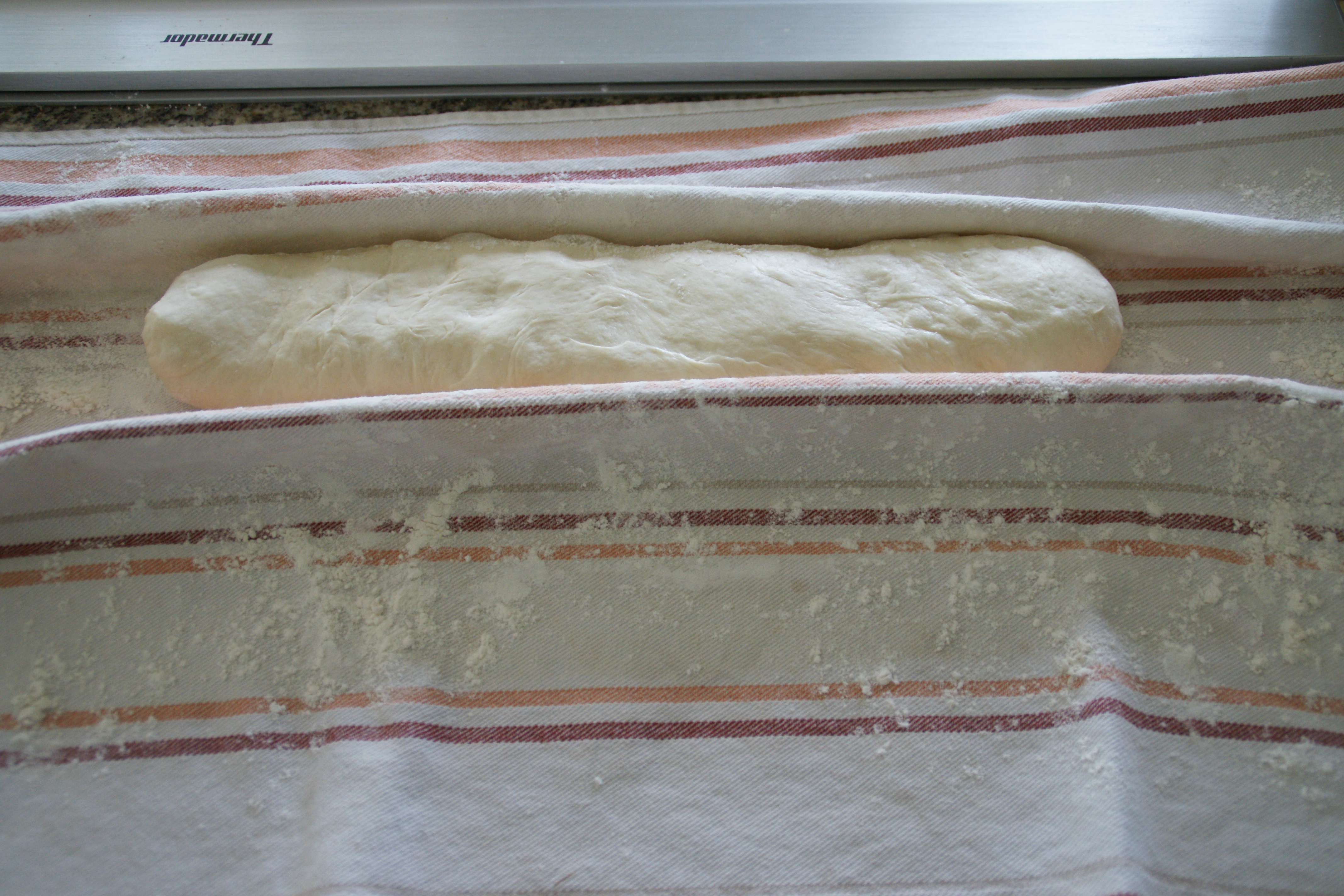 The process of making the baguette dough is the same as the one for making the pre-ferment; in fact, the ingredients are the same with the exception of the added pre-ferment. I’m largely going to recap the dough-making process and focus more describing the shaping, the second rise and baking. (Yeast breads generally have two rises). I should probably also let you know that I take shortcuts in shaping because I don’t really care if the loaves are perfectly symmetrical.