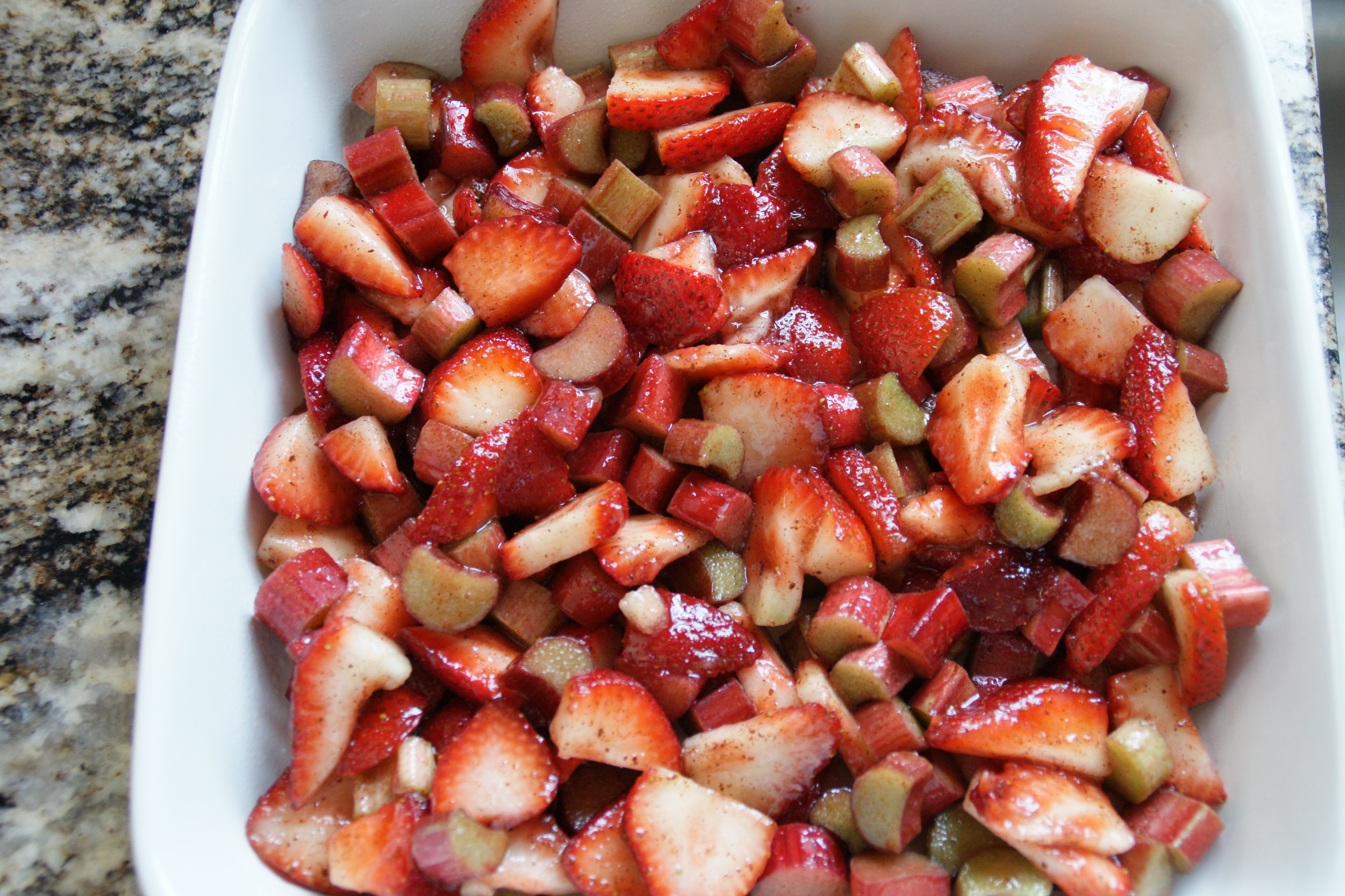 • 6 cups of 1/2-inch sliced rhubarb (or combination of rhubarb and sliced strawberries)