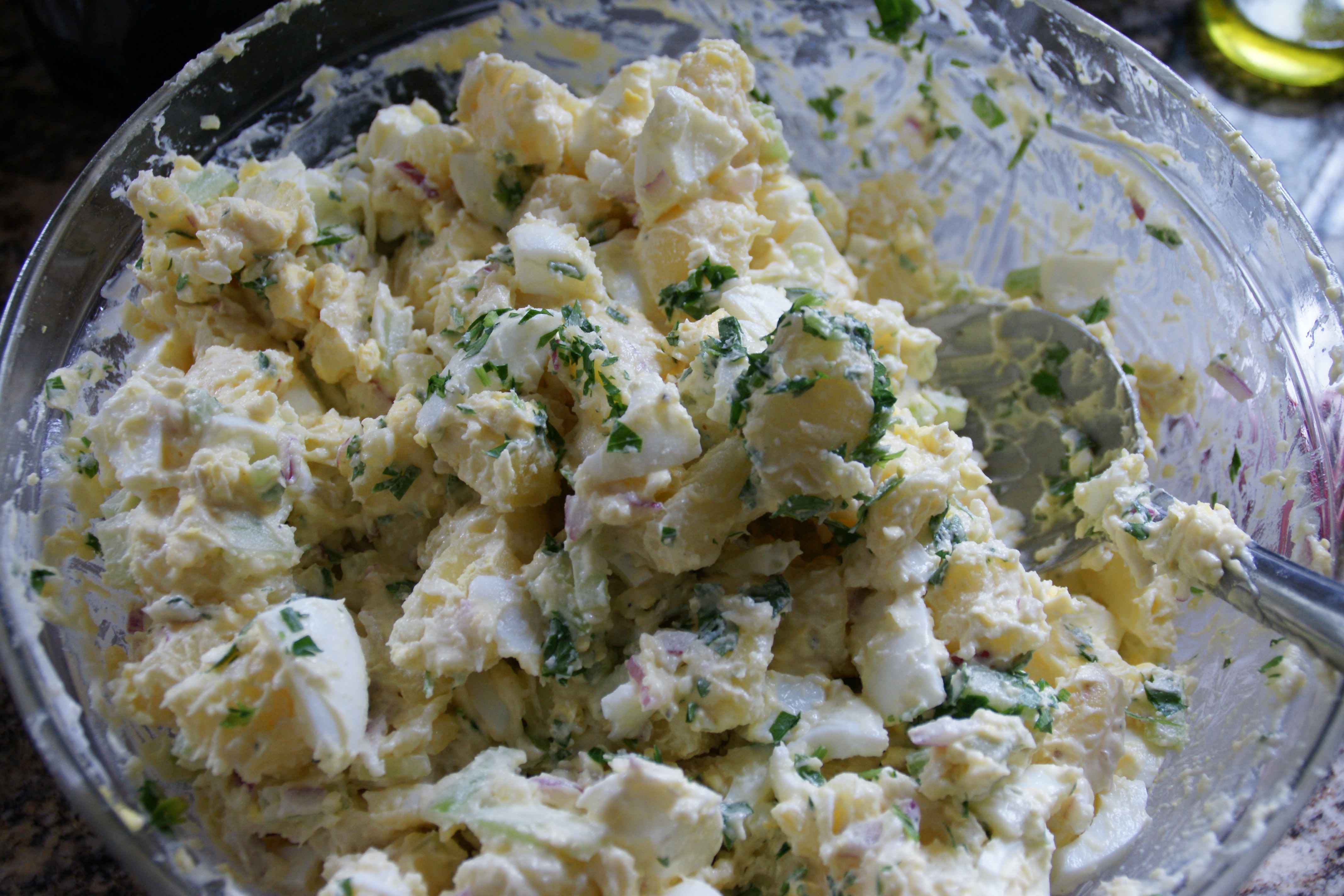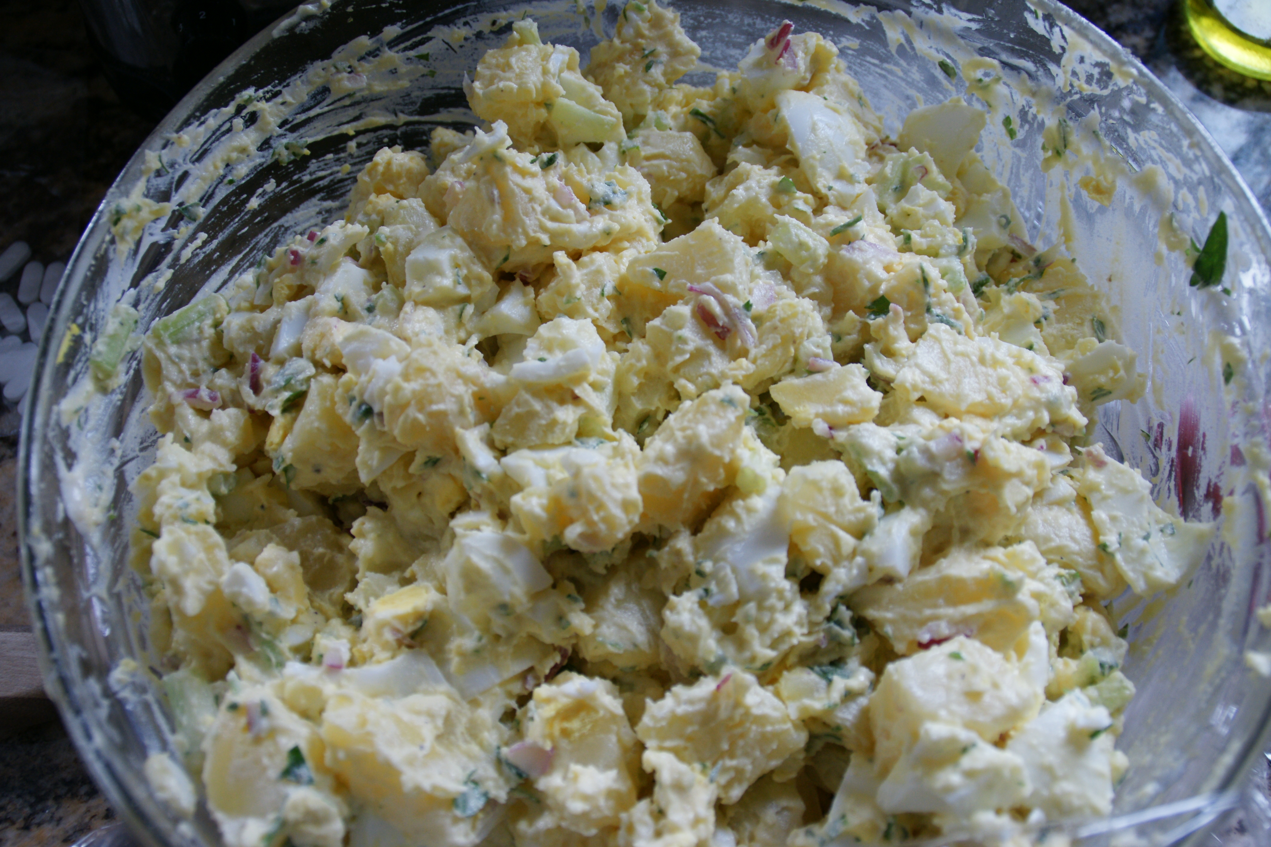 Potato salad recipes are by nature very forgiving.  You can mess around with the ingredients and still end up with a decent potato salad.  I personally think the difference between good and great is the type of potato you use and how you treat them.