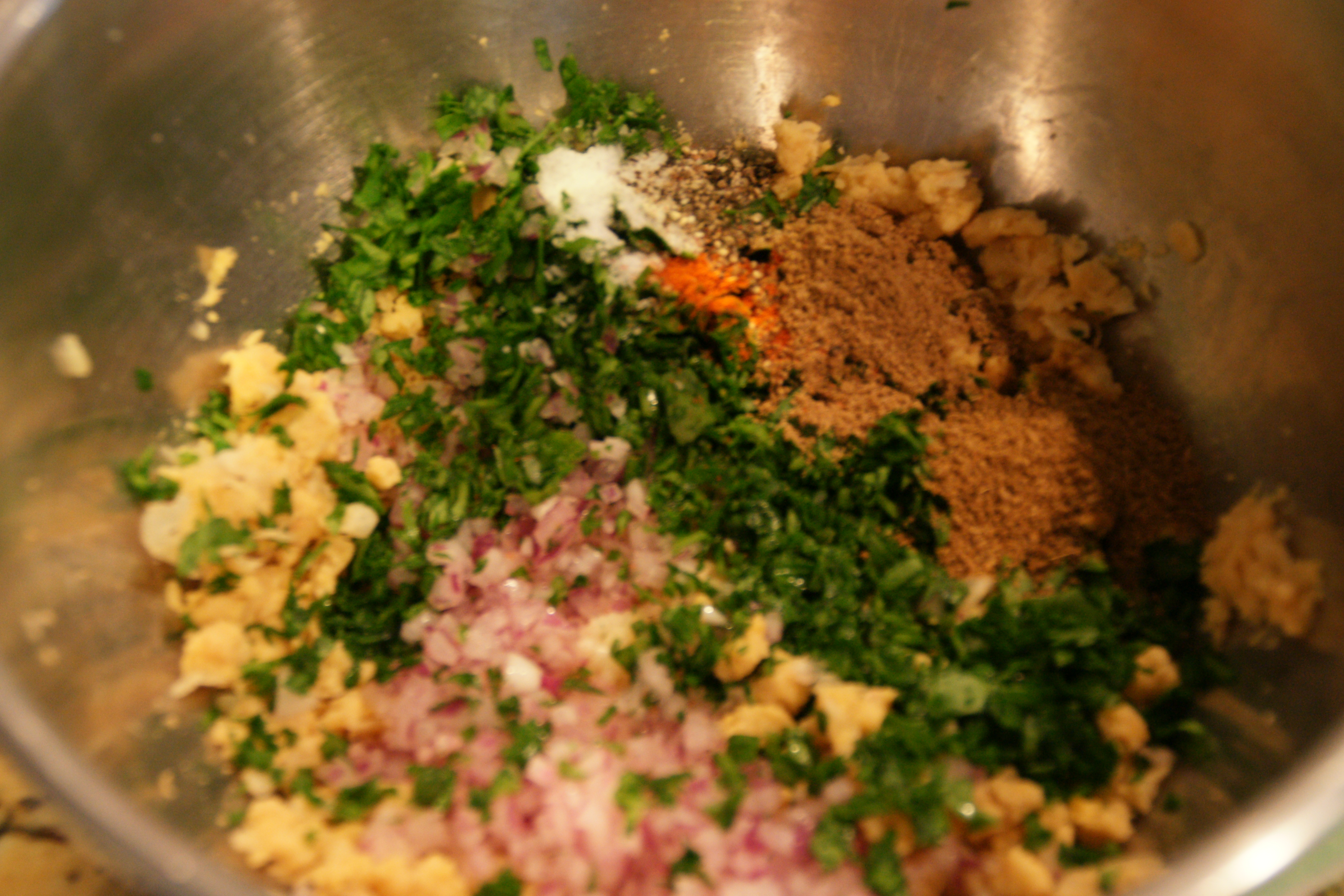 Add the onion, parsley, cumin, coriander, salt and lemon juice. Mix well.