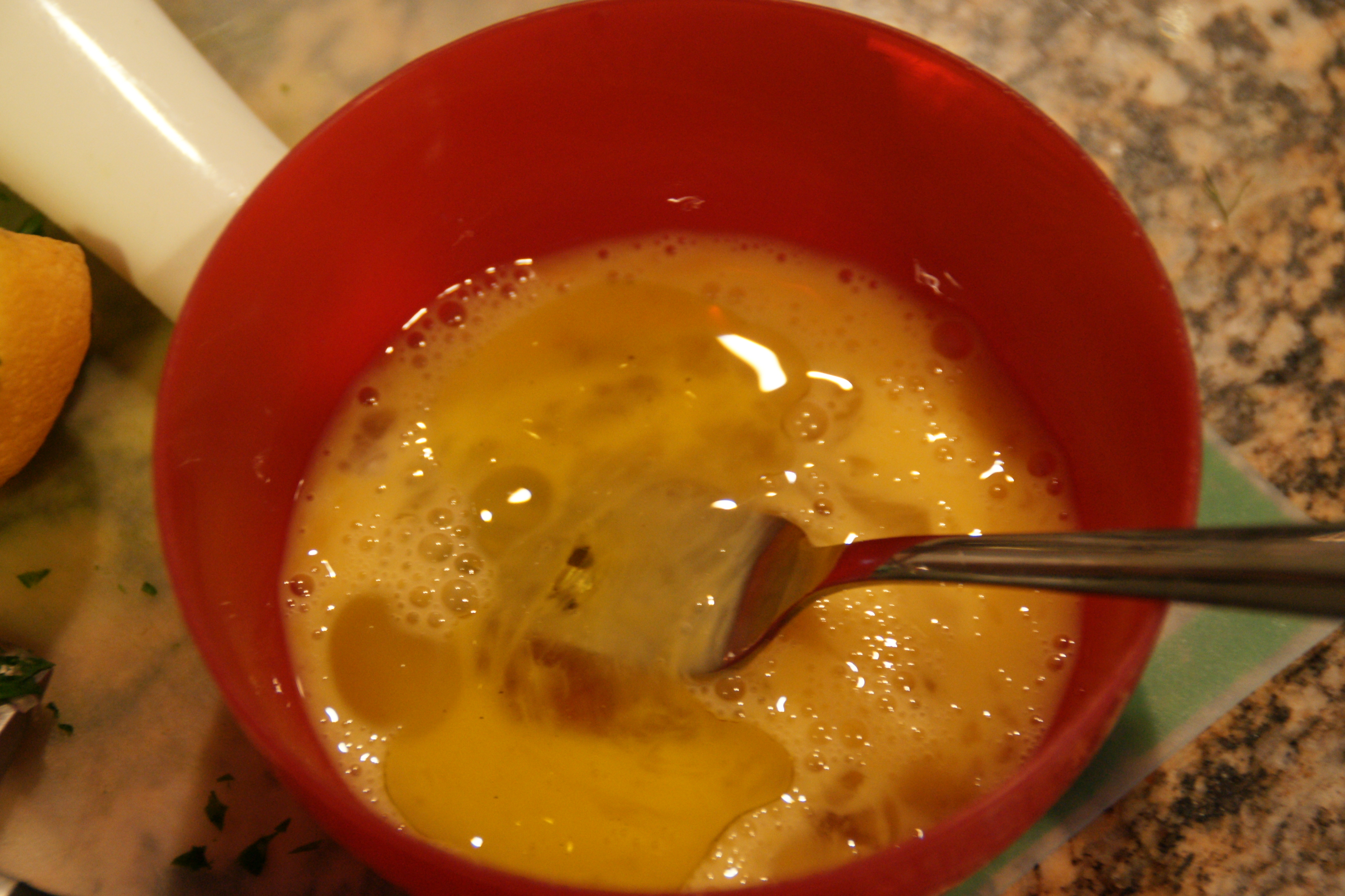 In a small bowl, beat the egg and olive oil together, then set aside.