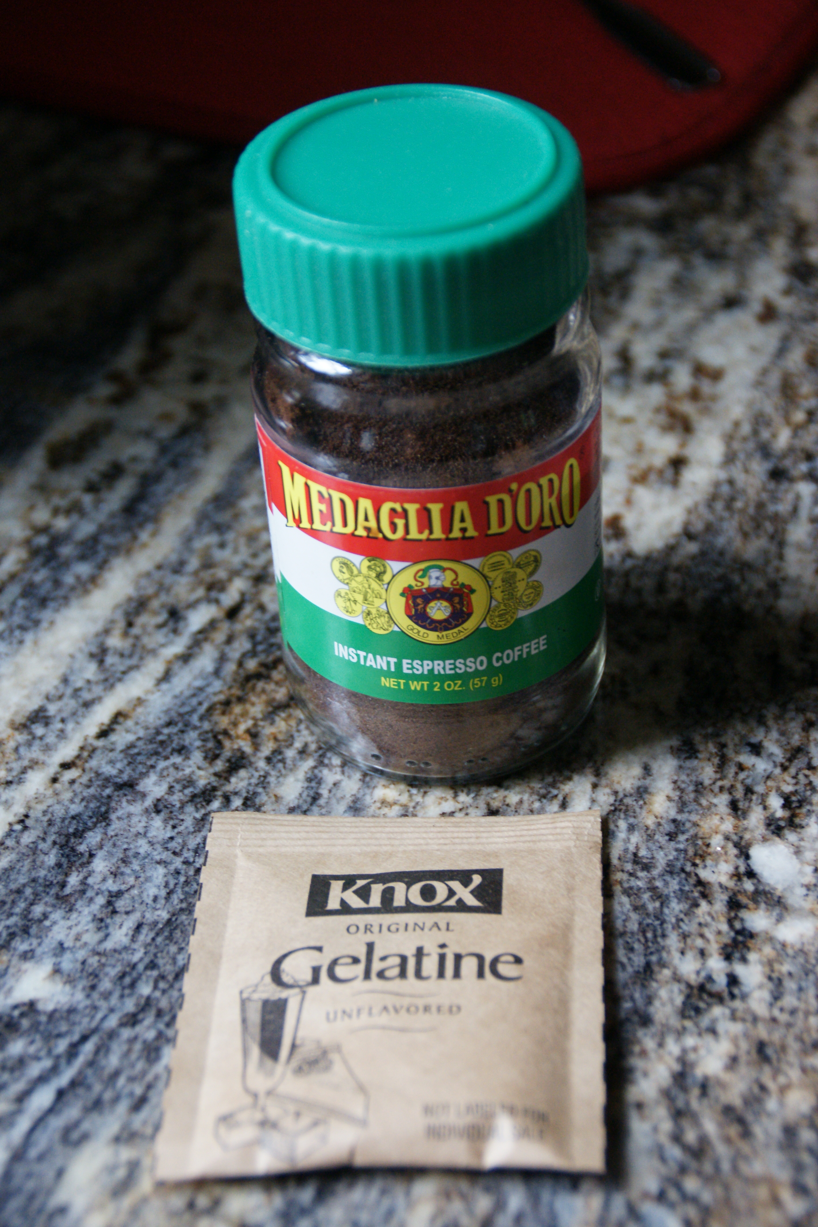 My method for getting that espresso flavor into my desserts?  What else but instant espresso powder?  The Medaglia D’Oro brand is now ubiquitous.  I mix it into hot coffee, which we always have on hand, and it works perfectly for me.