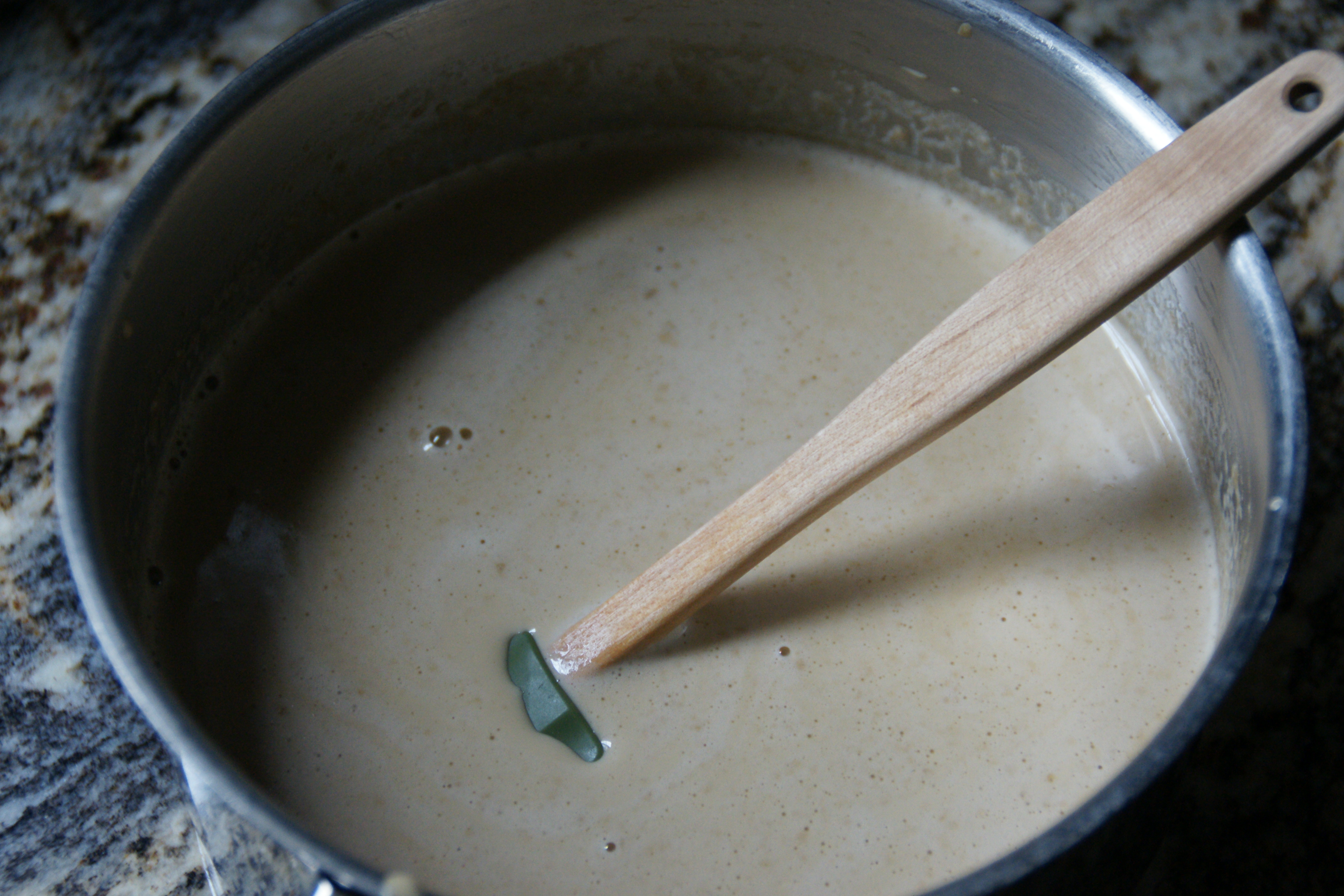 Place the cream mixture into a small sauce pan over medium heat.  Heat until small bubble form around the pan’s edges– do not let the cream come to a boil!