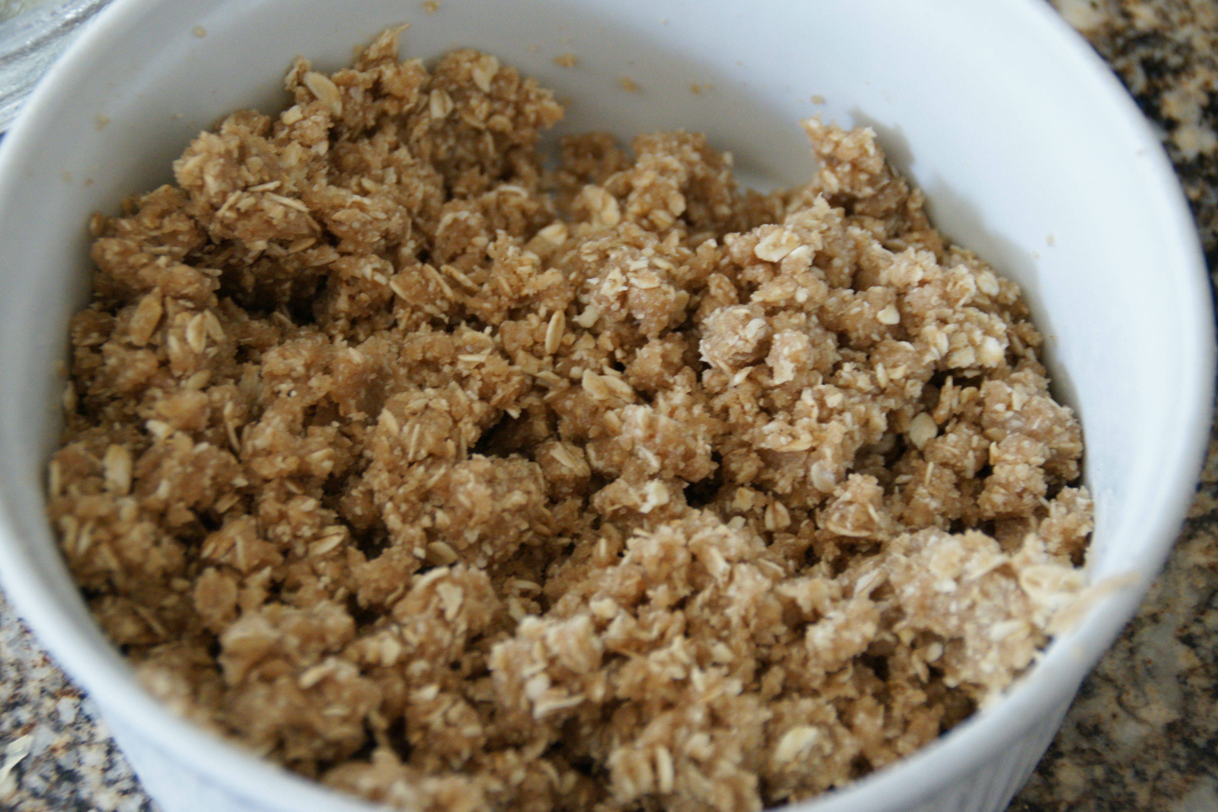 Spread the crumb topping as evenly as possible over the berries. I like to have both chunks and bits.