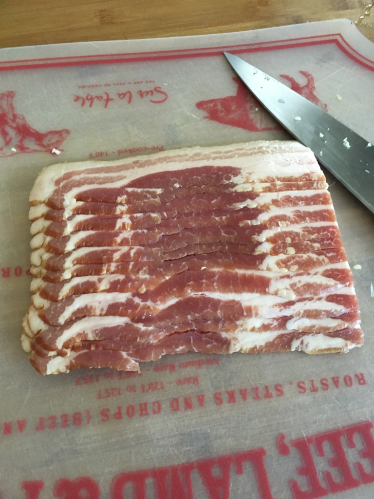 2/3 of a 12 oz pack– save the rest for bacon sandwiches or another recipe